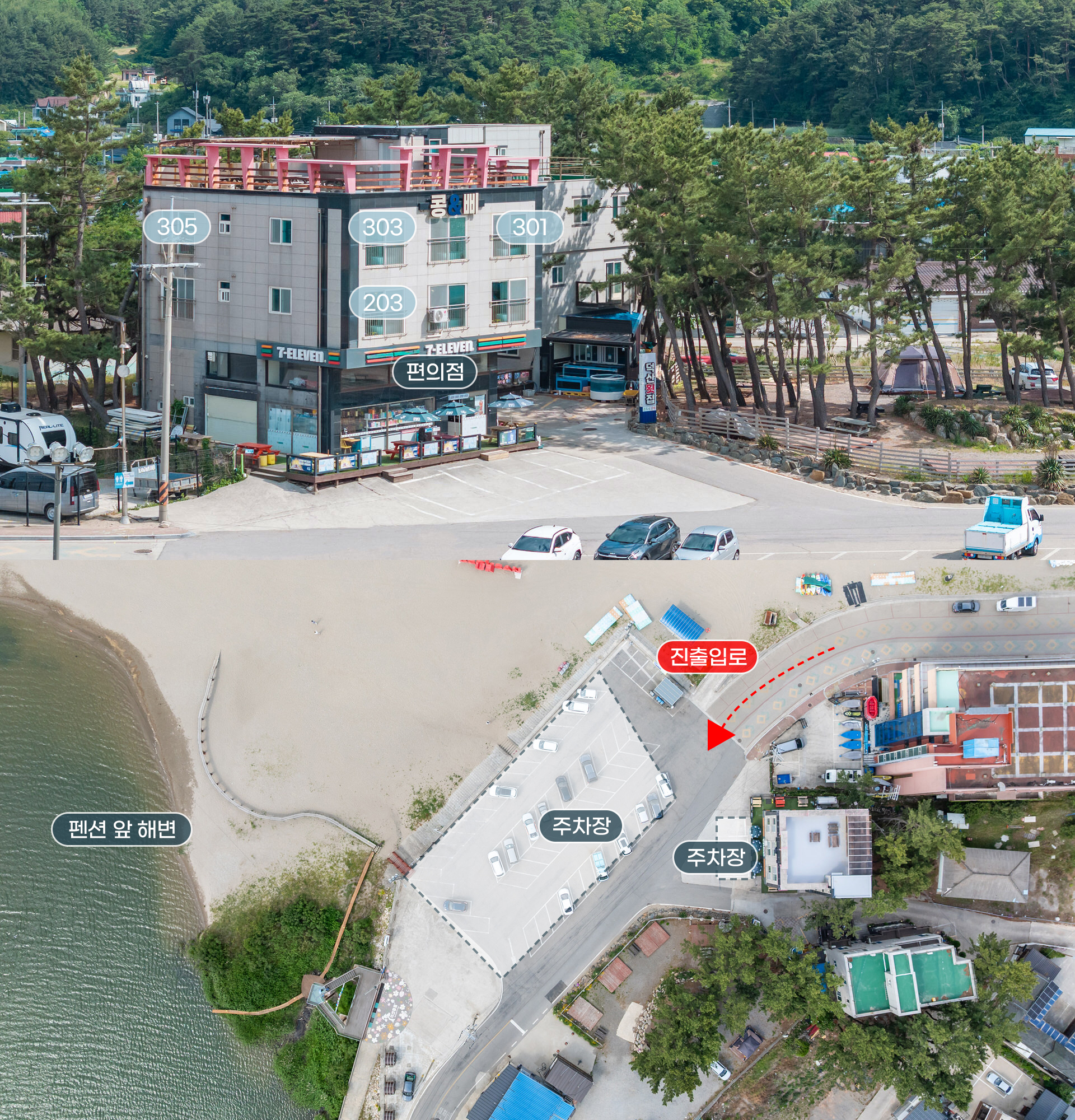 삼척 콩앤삐 오션뷰 펜션 배치도 안내입니다.